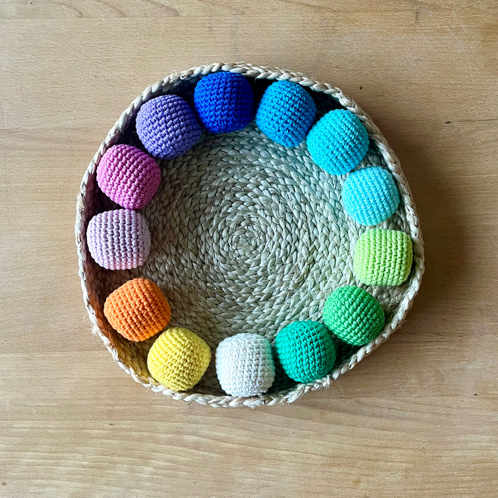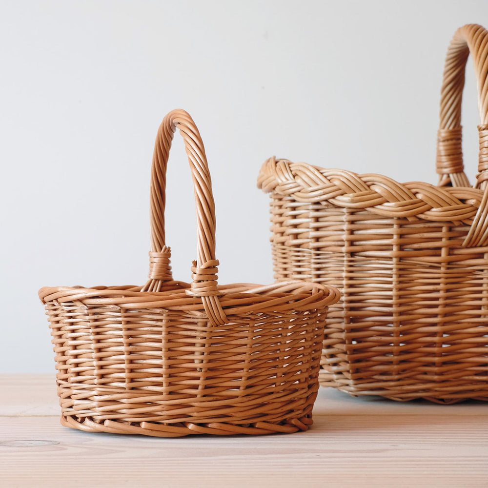 Die Miniausgabe des Einkaufskorbes. Zum Tannenzapfen sammeln, Zwerge tragen, Häkelbälle transportieren, Puppenkinder betten. Ein wichtiger Bestandteil für den Kaufmannsladen und die Puppenecke.