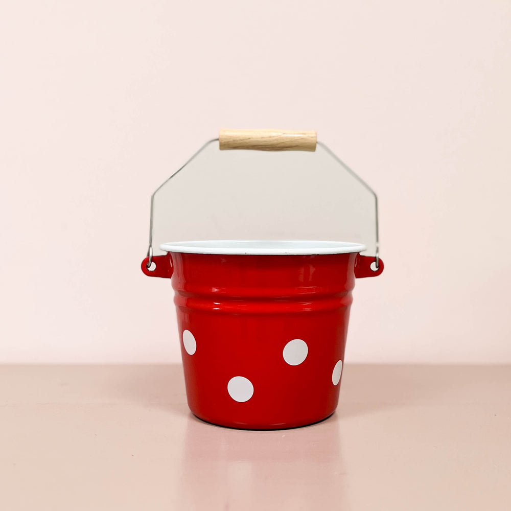 Dieser Kübel spürt sich wie ein Stück Kindheit an. Du hältst ihn am runden Holzstück fest und der Metallbügel, der damit ummantelt ist, lässt den Kübel ganz sanft hin und her schaukeln. Ein hochwertiger, seit Jahrzehnten bewährter Klassiker.