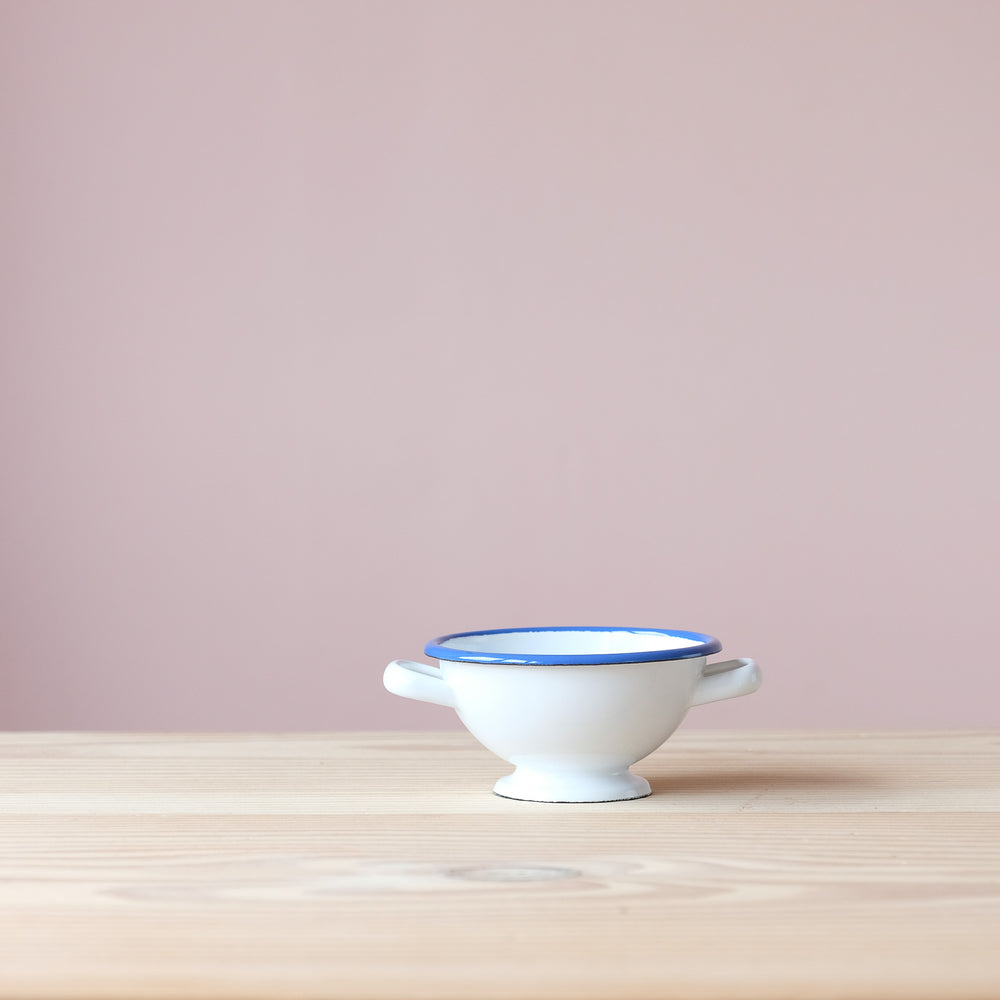 Traditonionelles Küchenzubehör für Puppenküche und Kinderhaushalt aus einem der wertvollsten Werkstoffe - aus Emaille. Emaille ist ein wunderbares Produkt. Es ist nachhaltig und langlebig. Es ist schlicht, einfach und schön. Und bestens geeignet für kleine und große Menschen, die gerne auf Kunststoff verzichten wollen.Ein kleines Sieb mit kleinen Löchern - für leidenschaftliche Köch:innen im Rollenspiel, in der Sandwanne, im SandSpielRaum oder, um deinem kleinen Helfer in der Küche sein eigenes Werkzeug anzubieten.