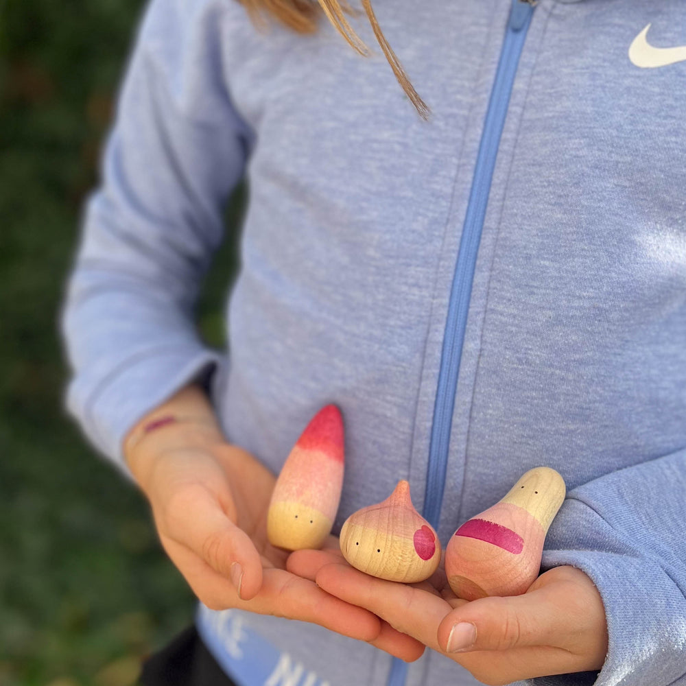 Yay, wer hat sich denn da so schön gemacht? Eine ziemlich runde Familie in handbemalten Festtagskleidern. Jedes Familienmitglied der Familie Yay liegt angenehm geschmeidig in der Hand und ist für kleine und große Kinder ein sinnliches Gebilde, das alles sein kann, was es denn sein könnte.