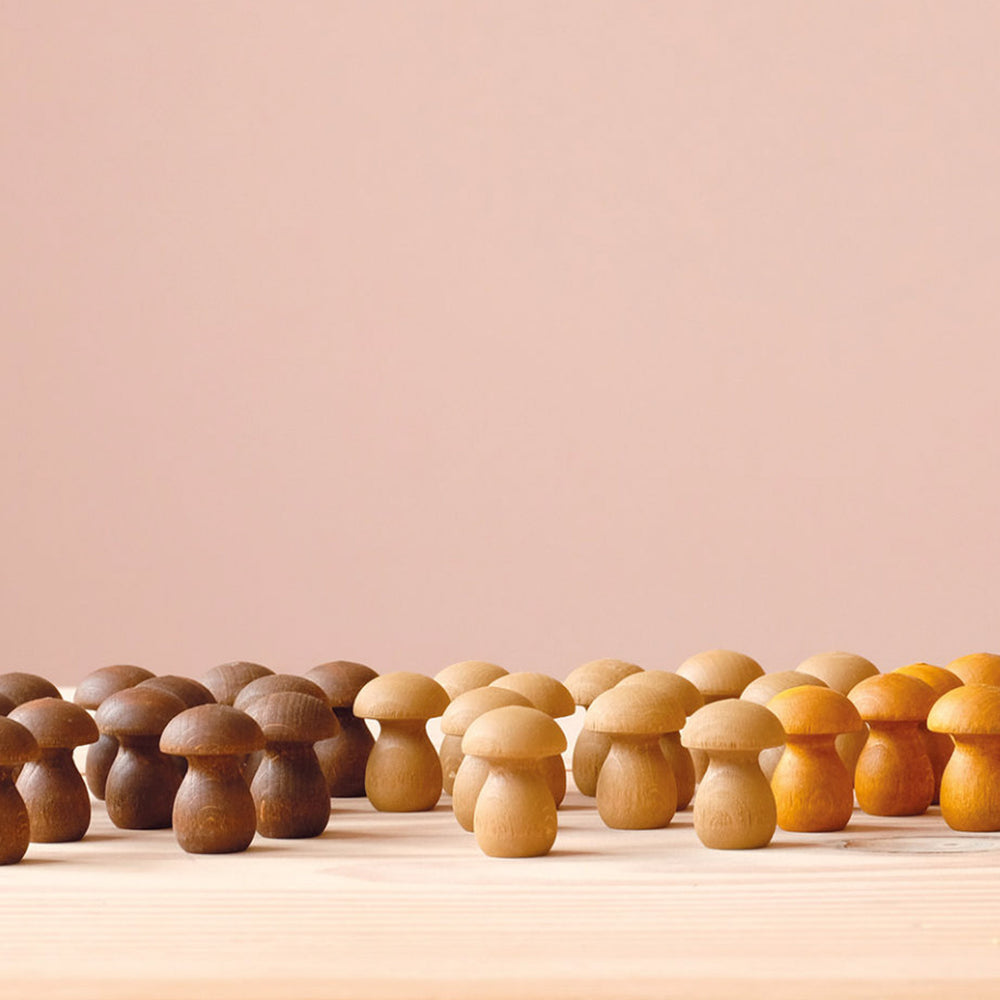 Die grüne Krone aus Filz, die etwas beweglich und doch fest auf dem Stamm aus Treibholz sitzt, leuchtet kräftig und lädt dazu ein, kleine Welten im Wald zu erschaffen und aufzubauen.