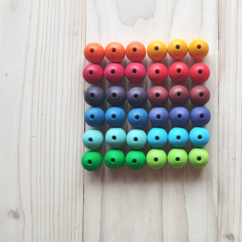 So wie es unser Hersteller beschreibt: "Holzperlen sind eines der elementarsten Spielmaterialien für Kinder. Beim Fädeln wird die Auge-Hand Koordination gefördert und die Feinmotorik geschult. Diese bunten Holzperlen sind in 12 Regenbogenfarben von hellgelb über Rot- und Blautöne bis hellgrün sortiert".