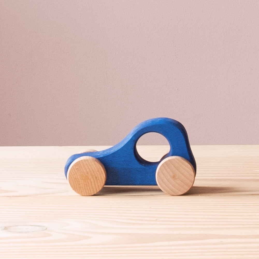 Das gelbe Holzauto von Grimms wird aus Lindenholz gefertigt und mit schadstofffreier Lasur behandelt. Ein kleines gelbes, robustes Cabrio für einen Fahrer, der gut im Wagen Platz hat.