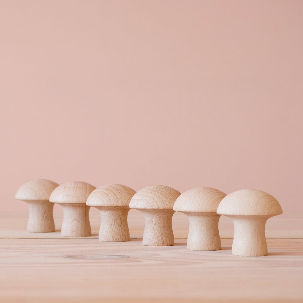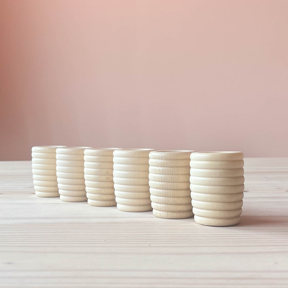 Der Holzbecher fühlt sich interessant an, mit seinen erhabenen Rillen. Es ist eine besondere Erfahrung ihn in Händen zu halten. Er ist tief - so tief, dass das spielende, das forschende Kind beim Begreifen die Dimension des Innenraums erfühlen kann. Und es ist spannend auszuprobieren, was in den Becher gut hineinpasst. Der Familie Knospe und bunten Zwergen ist er ein gutes Versteck und auch die Schwammerl können im Becher anfangen zu wachsen :-)