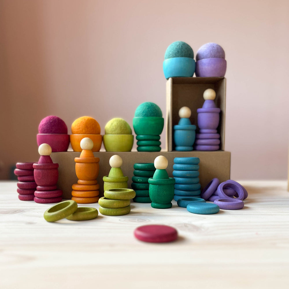Unser Geschenkset besteht aus unseren Lieblings-Grapat-Basics in 6 sanften, erdigen, etwas gedämpften Farben und 6 farblich darauf abgestimmten KOKOMOO Filzbällen. Durch das Spieleset wird eine Welt eröffnet, die sich bestens dafür eignet von Kindern unterschiedlichen Alters bespielt zu werden. Vom ersten Greifen, über Puppenküche, Farben sortieren, Mathe-Aufgaben lösen, Muster legen… Ein Spielmaterial zum Mitwachsen.