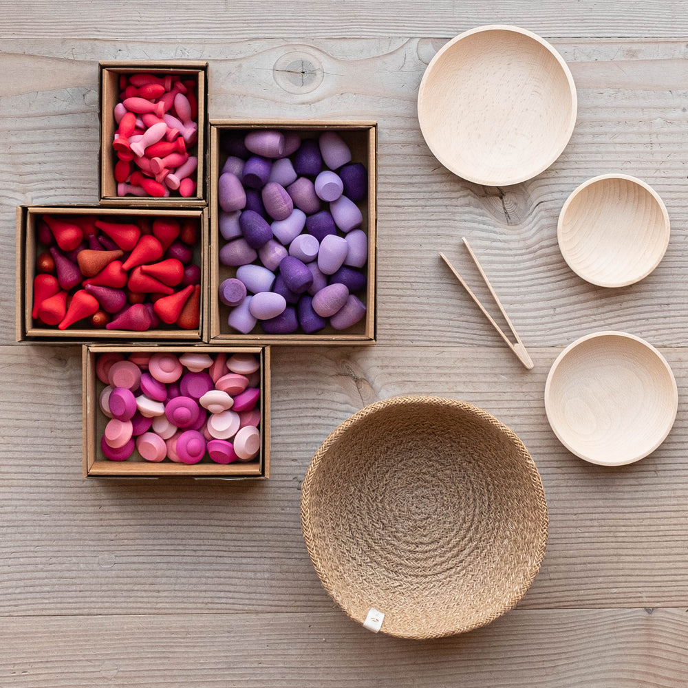 Wenn du dich für dieses Set entscheidest, schenken wir dir zu deinem Set eine kleine Holzzange dazu. Mit ihr macht es besonders Freude die einzelnen Teile ganz behutsam zu fassen und gleichzeitig ist es eine lustvolle Übung der Feinmotorik.