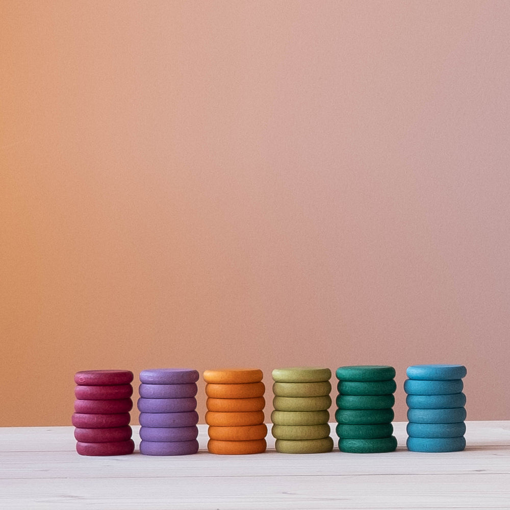 Plättchen, Münzen, Kekse, Glückstaler, Bausteine... wenn ein Spielmaterial so vielseitig und schön ist, ist das die beste Voraussetzung, dass es auf vielfältigste Art und Weise im freien Spiel des Kindes verwendet wird.