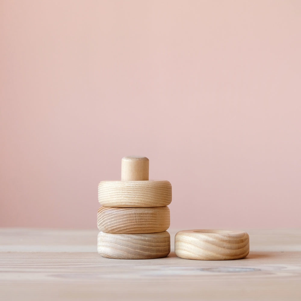 Das Steckspiel ist eine Einladung die Farben zu zuordnen, sie in selbst gewählter Reihenfolge zu stecken. Wenn du dein Kind beobachtest, wie es sich dem Spielmaterial „annähert“, dann wirst du vielleicht entdecken, dass es nicht sofort um das Stecken in richtiger Reihenfolge geht. Vielleicht will dein Kind einfach nur die runde Form und das Loch der Scheibe ertasten, vielleicht will es die Scheiben rollen lassen, die Scheiben sammeln und nach Farben sortieren. Und möglicherweise will es irgendwann das „Fabuto“ genau in der Reihenfolge aufbauen, wie es gedacht war. Doch das kann Zeit brauchen. Mehr anzeigen
