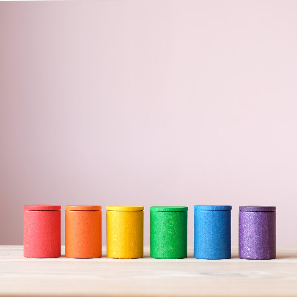 Die farbenfrohen Töpfchen (Mates) von Grapat sind eine liebevolle Ergänzung zum Kleine Freunde Set 6 Farben. Die kleinen Freunde passen perfekt hinein – und schon beginnt das Stecken, Ordnen und Kombinieren.