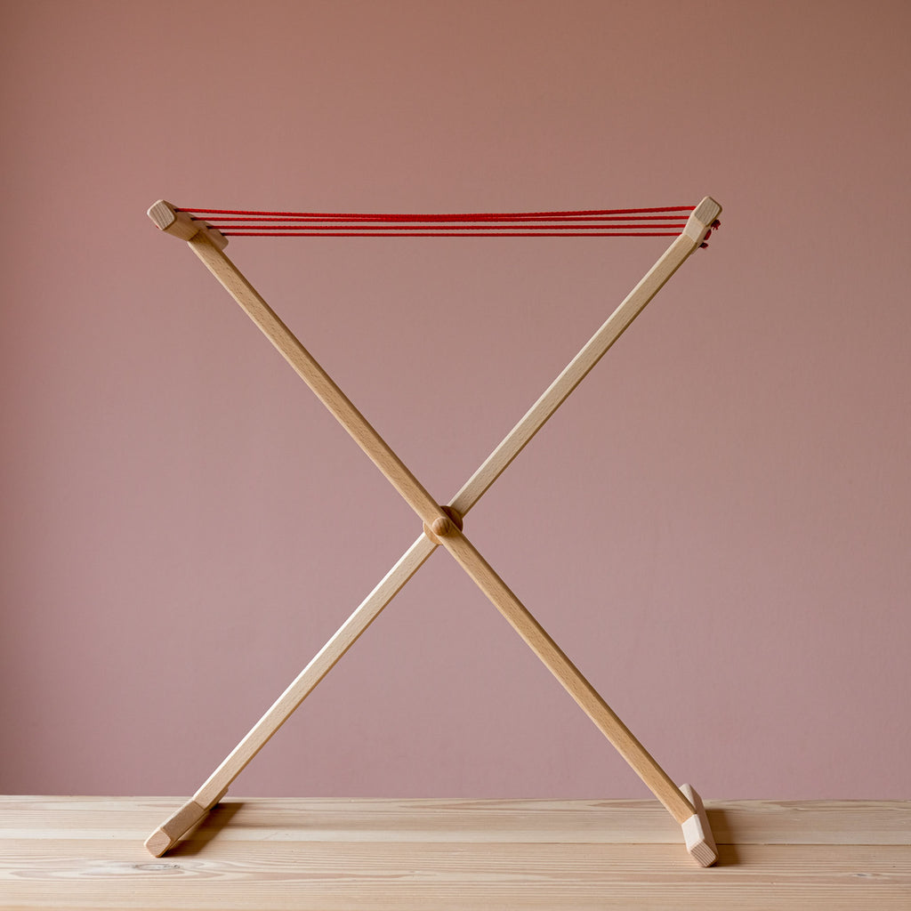 Der Wäscheständer lässt sich leicht auf- und abbauen und ist daher auch ideal für kleine Räume. Perfekt kombinierbar mit einer kleinen Wäscheleine, Holzklammern oder der Puppenwäsche aus Stoff – für ein echtes, sinnvolles Rollenspiel.