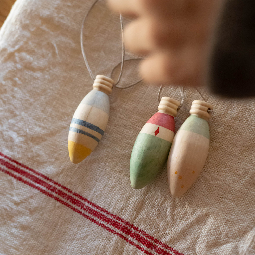 Wie schön ist der Advent und die Weihnachtszeit mit diesem Christbaumschmuck von Grapat? Ob du deine Räume für die Adventzeit schmückst, es bei euch zuhause einen Jahreszeitentisch für die Vorweihnachtszeit gibt oder ob du für ein Fest Tannenzweige oder ein Bäumchen dekorierst - diese 3 handbemalten Weihnachtsschmuck-Holzformen sind ein wundervoller Blickfang und lassen Magie ins Spielzimmer einziehen.