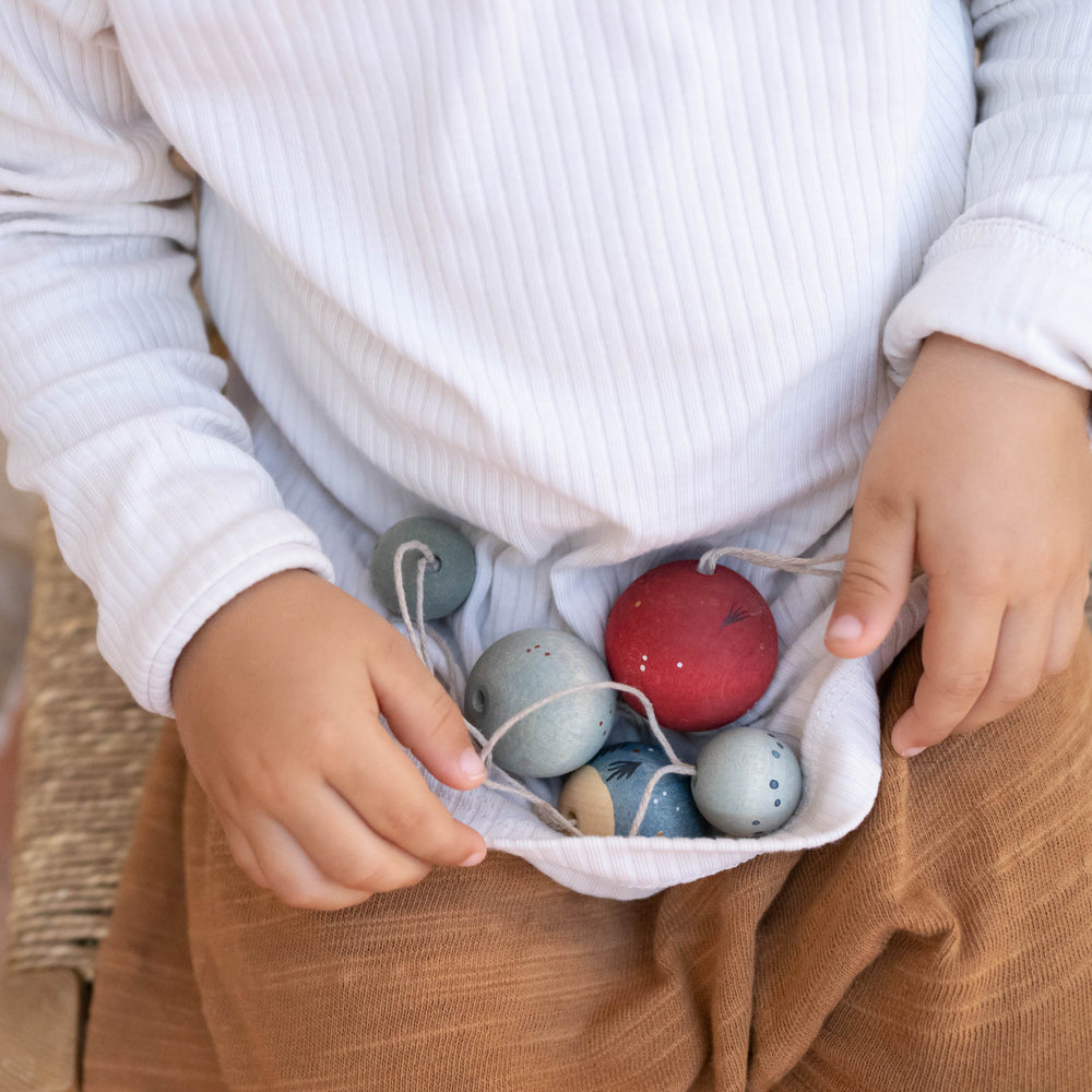 Darf ich dich bitten dir einen Moment Zeit zu nehmen, um die feinen, winterlichen Zeichnungen der bunt-lasierten Christbaumkugeln aus Holz zu bestaunen. Kleine, zauberhafte Welten auf kleinen Kugeln - von Hand bemalt. Ob du deine Räume für die Adventzeit schmückst, es bei euch zuhause einen Jahreszeitentisch für die Vorweihnachtszeit gibt oder ob du für ein Fest Tannenzweige oder ein Bäumchen dekorierst - diese 5 handbemalten Weihnachtsschmuck-Holzkugeln sind ein wundervoller Blickfang und lassen Magie ins Spielzimmer einziehen.