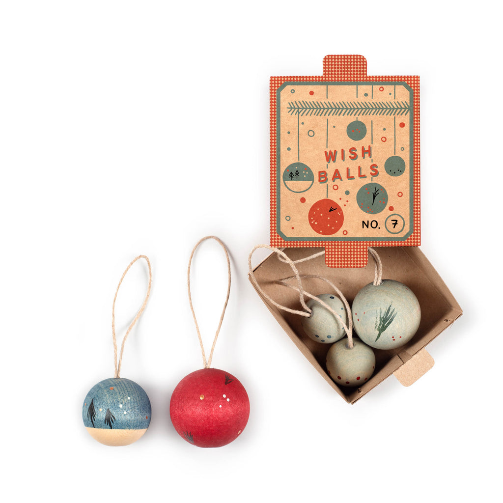 - 5 handbemalte Holzkugeln zum Aufhängen